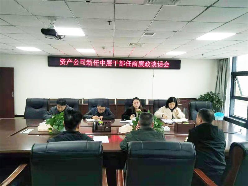 2019年11月22日,資產(chǎn)公司執(zhí)行董事、總經(jīng)理王華組織新任職4位中層干部開展任前廉政談話。副總經(jīng)理謝玉芳、項目總工吳仕雄參加談話。