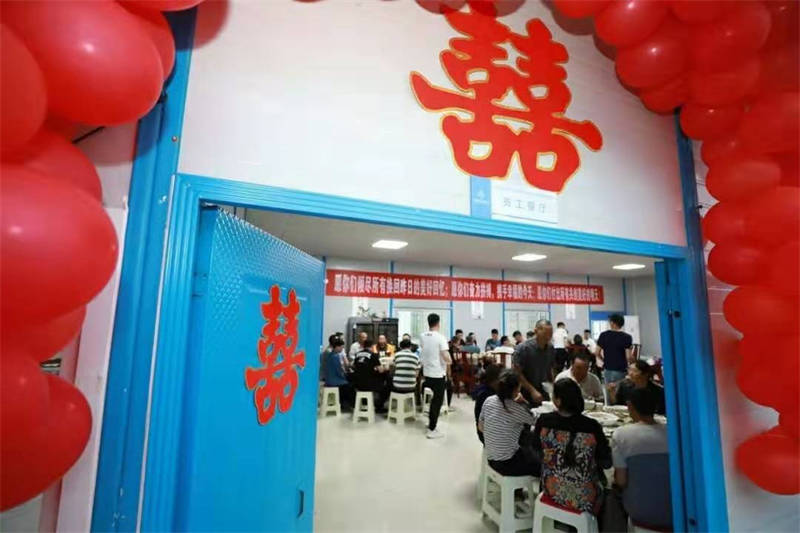 張萬清在致辭中表示,4對新人5月20日領(lǐng)證,5月21日舉行婚禮。這不僅展現(xiàn)了現(xiàn)在年輕夫妻一起吃苦、共同奮斗的優(yōu)秀品格和追求幸福的急迫心情,也展現(xiàn)出我們項目部的高效率。雖然今天的婚禮殿堂很簡陋,沒有婚紗,也沒有禮服,但是有我們所有工友的美好祝福。最后祝愿4對新人百年好合、永結(jié)同心,在交通集團(tuán)這個大家庭里,互相幫助、互相支持、共創(chuàng)輝煌的事業(yè)。