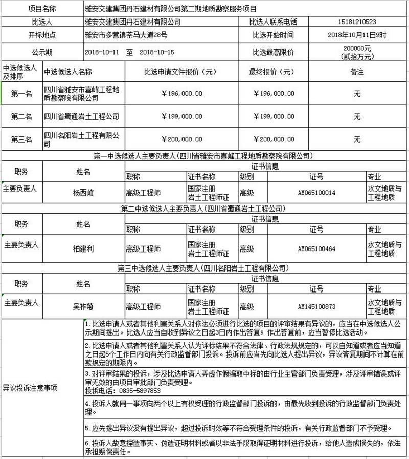 雅安交建集團丹石建材有限公司第二期地質(zhì)勘察服務(wù)項目比選公告