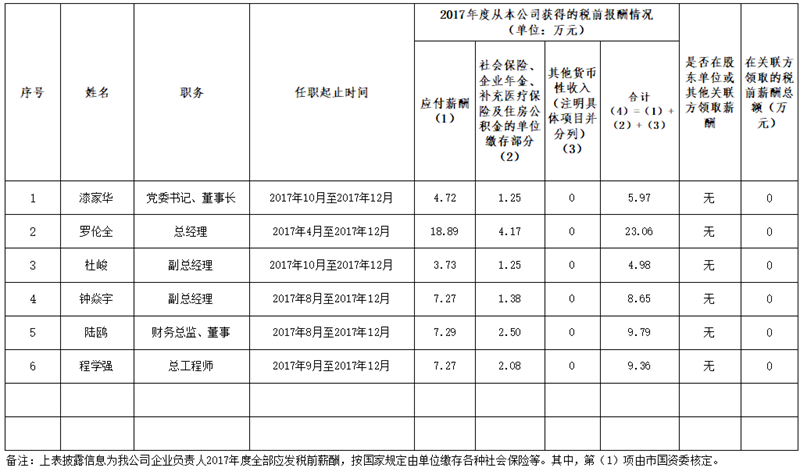 雅安市交通建設(shè)(集團)有限責(zé)任公司企業(yè)負責(zé)人2017年度薪酬情況公示表