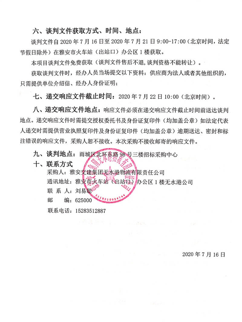 雅安交建集團無水港物流有限責(zé)任公司雅安市鳳鳴綜合物流園項目戶外廣告牌制作安裝施工項目(第二次)競爭性談判公告