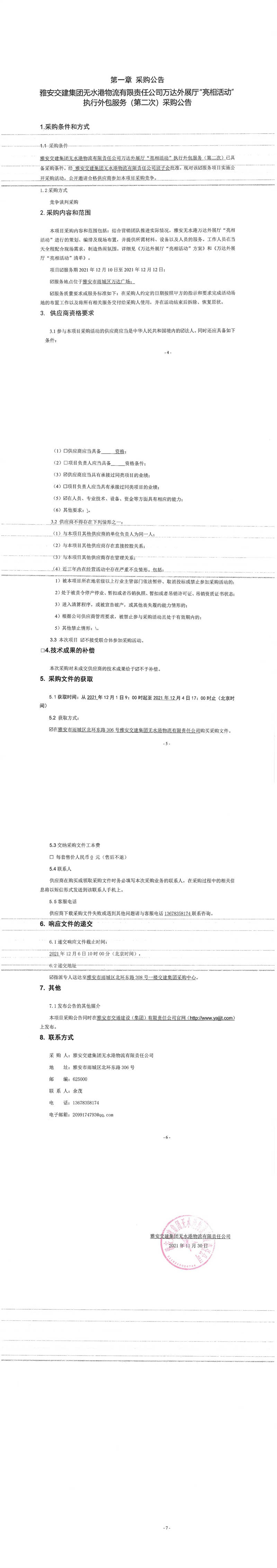 雅安交建集團(tuán)無水港物流有限責(zé)任公司萬達(dá)外展廳“亮相活動(dòng)”執(zhí)行外包服務(wù)(第二次)采購(gòu)公告