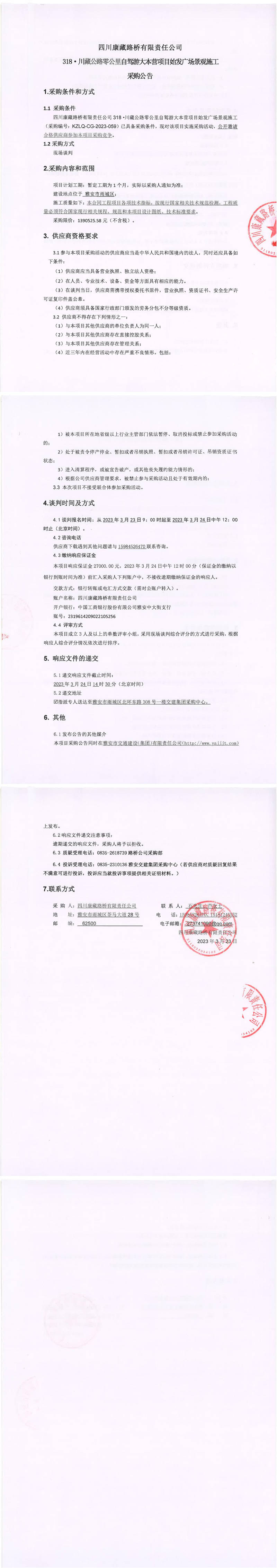 四川康藏路橋有限責任公司318·川藏公路零公里自駕游大本營項目始發(fā)廣場景觀施工采購公告