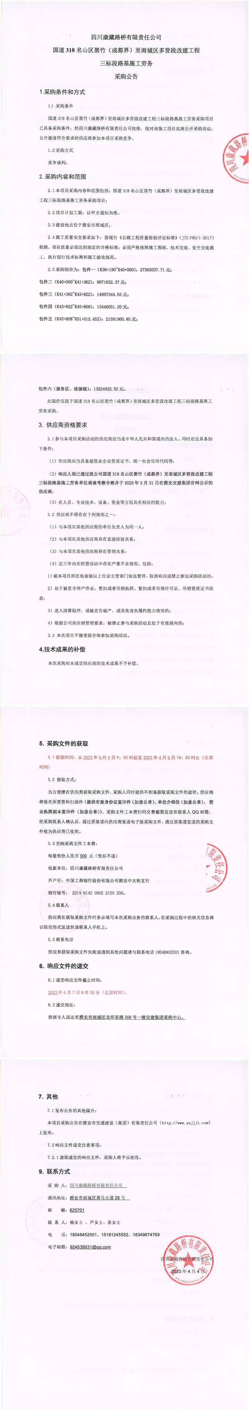 四川康藏路橋有限責任公司國道318名山區(qū)黑竹(成都界)至雨城區(qū)多營段改建工程三標段路基施工勞務采購公告
