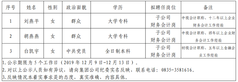 根據雅安市交通建設(集團)有限責任公司招聘公告,經公開報名、資格初審、筆試、面試、等環(huán)節(jié),現將以下3名擬聘用人員予以公示:
