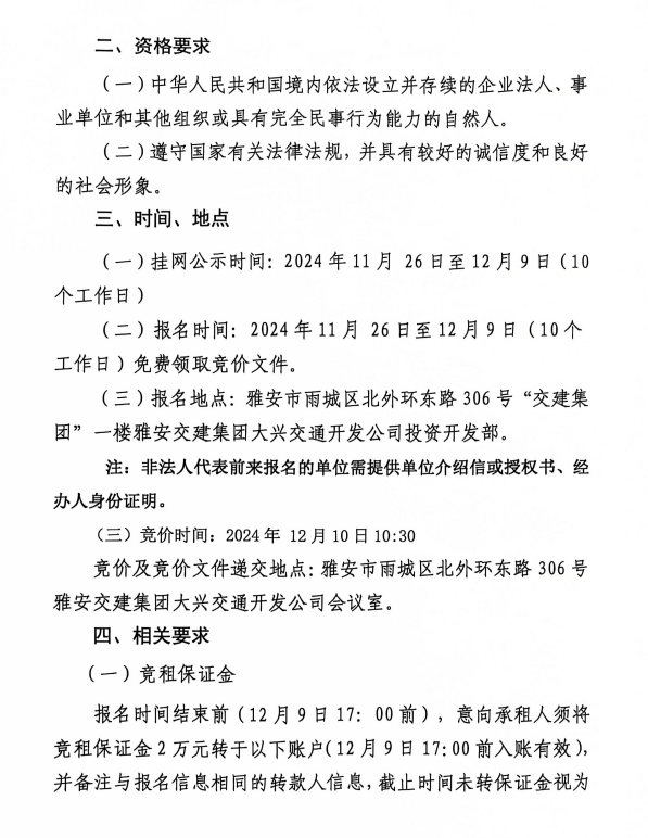 雅安市城市綜合停車場姚橋綜合停車場及配套用房招租公告