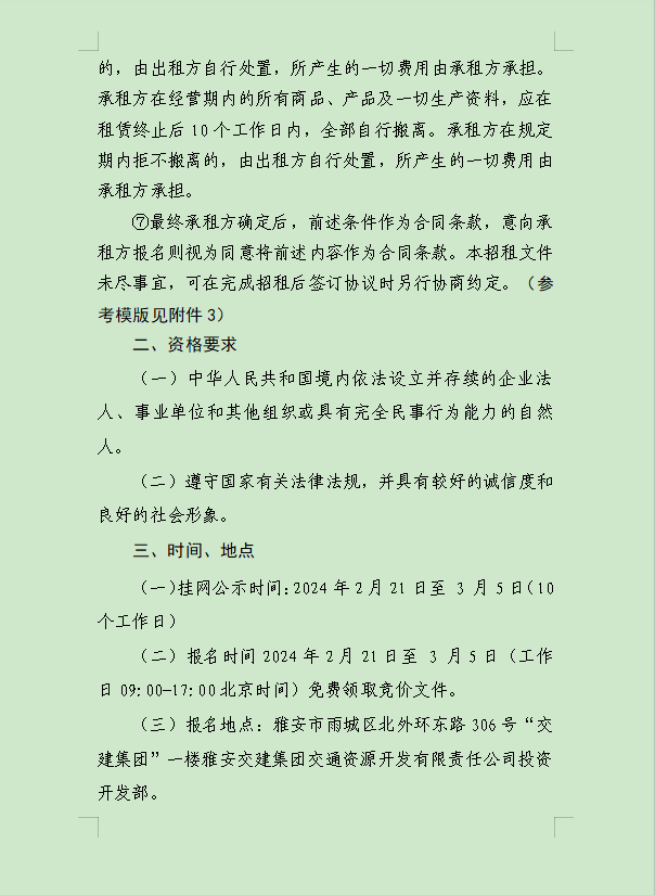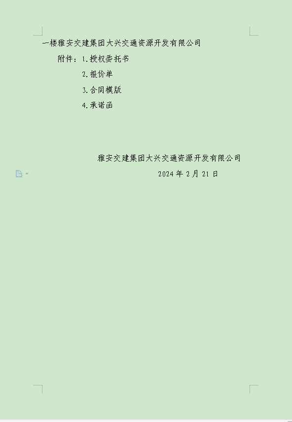 雅安交建集團(tuán)大興交通資源開發(fā)有限公司關(guān)于雨城區(qū)姚橋片區(qū)15-09地塊2024年競價招租的公告附件