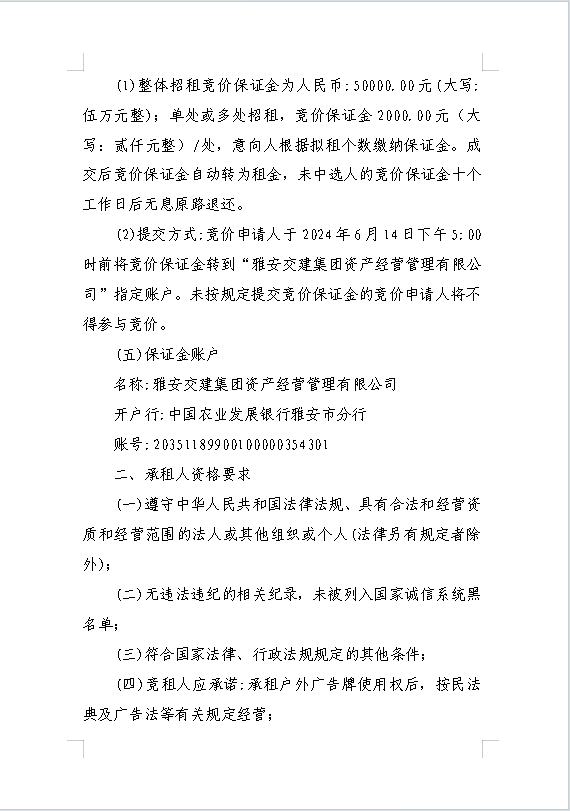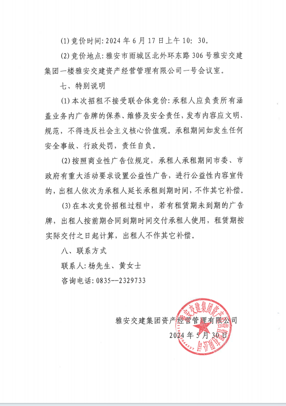 雅安交建集團資產(chǎn)經(jīng)營管理有限公司關(guān)于戶外廣告位競價招租的公告附件