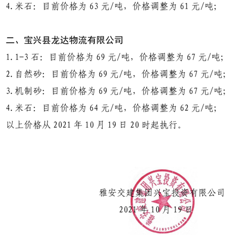 ÑŰ²½»½¨¼¯ˆF(tu¨¢n)ÅdŒš¹«Ë¾êP(gu¨¡n)ÓÚÕ{(di¨¤o)Õû³ÉÆ·ÁÏäNÊÛƒr(ji¨¤)¸ñµÄ֪ͨ£¨2021.10.15£©