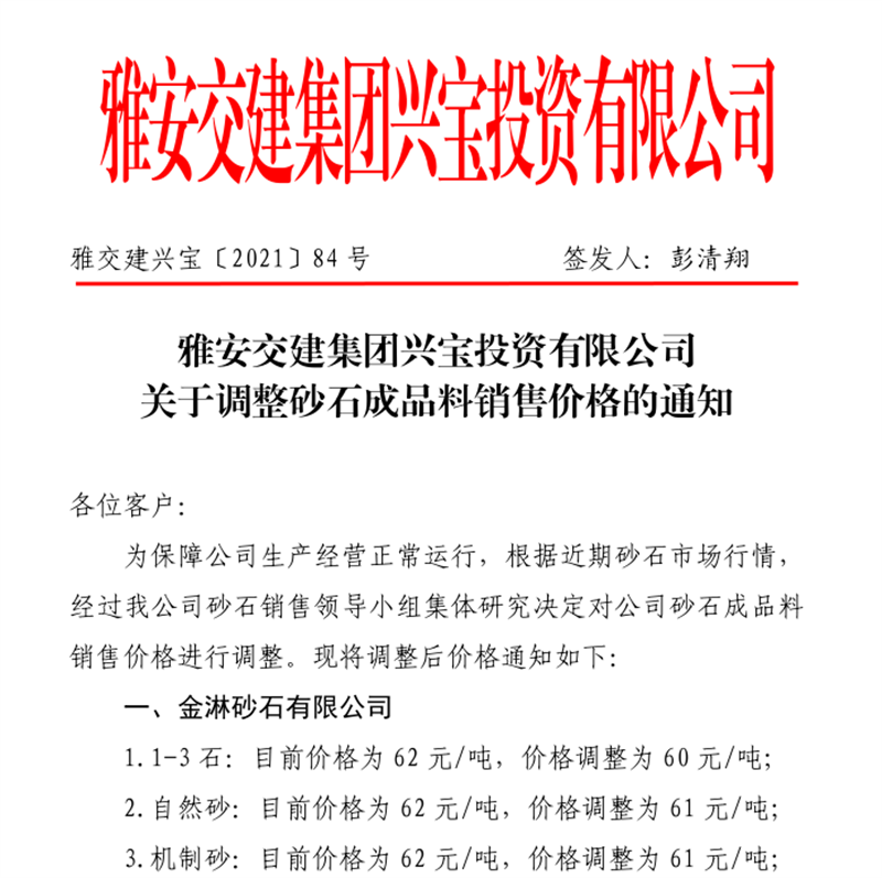 ÑŰ²½»½¨¼¯ˆFµ¤Ê¯¹«Ë¾êP(gu¨¡n)ÓÚÕ{(di¨¤o)Õûɰʯ³ÉÆ·¹ÇÁÏäNÊÛƒr¸ñµÄ֪ͨ£¨2021.12.9£©