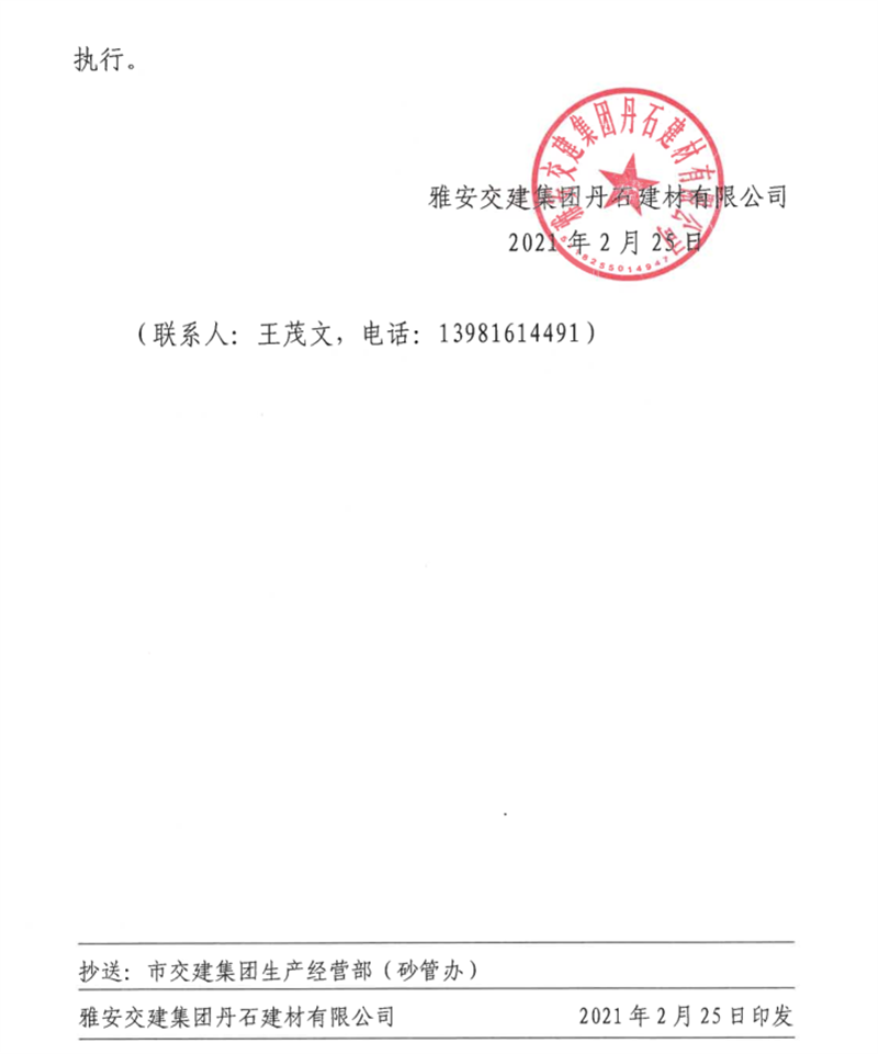 雅安交建集團(tuán)丹石公司石灰?guī)r成品骨料掛牌價(jià)(2021.2.25)