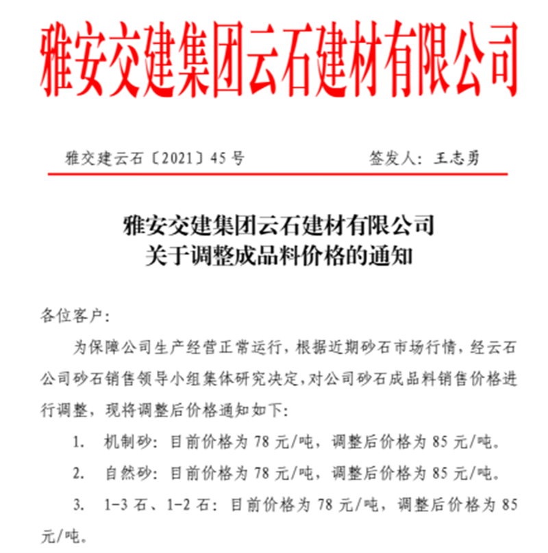 ÑŰ²½»½¨¼¯ˆFÔÆÊ¯¹«Ë¾êPÓÚÕ{Õû³ÉÆ·ÁÏäNÊÛƒr¸ñµÄ֪ͨ£¨2021.11.4£©